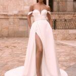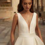 Střih bez vleček i s vlečkami, decentní splývavé, klasické princeznovské, balonové střihy, extravagantní, romantické krajkové, antické, těhotenské aj. Originální kombinace materiálů (šifon, tyl, satén, taft, krajka), výšivek a kamínkových aplikací.